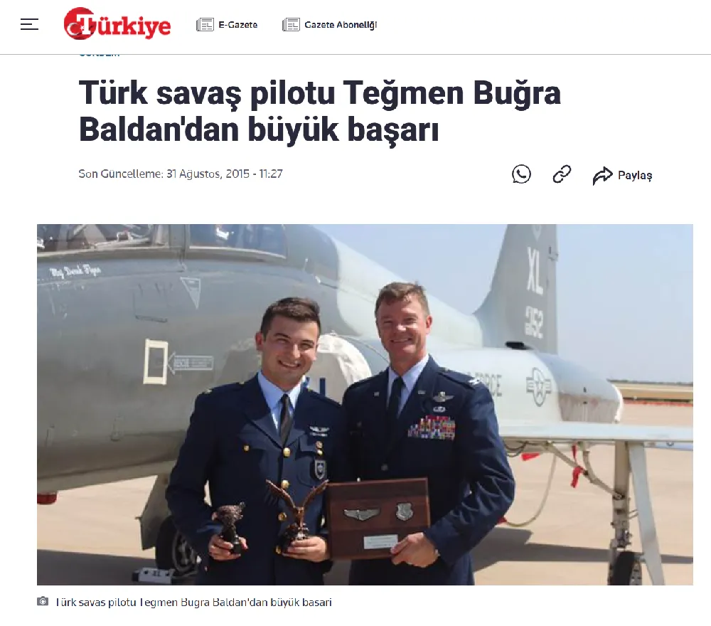 Buğra Baldan’ın havacılık kariyerindeki tarihi başarıları, hem ulusal hem de uluslararası basında geniş yankı bulmuştur. ABD’de "Yılın Pilotu" seçilerek kazandığı ödüller, Türkiye'nin gurur kaynağı olarak "Jet Türk" ve "Dünya Birincisi" gibi manşetlerle gazete ve televizyon haberlerine taşınmıştır. Bu bölüm, Baldan’ın askeri disiplini ve üstün yeteneklerinin medya organları tarafından nasıl tescillendiğini ortaya koyan arşiv niteliğindeki haberleri içermektedir.